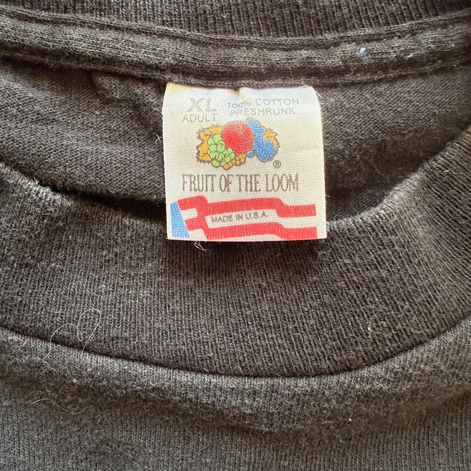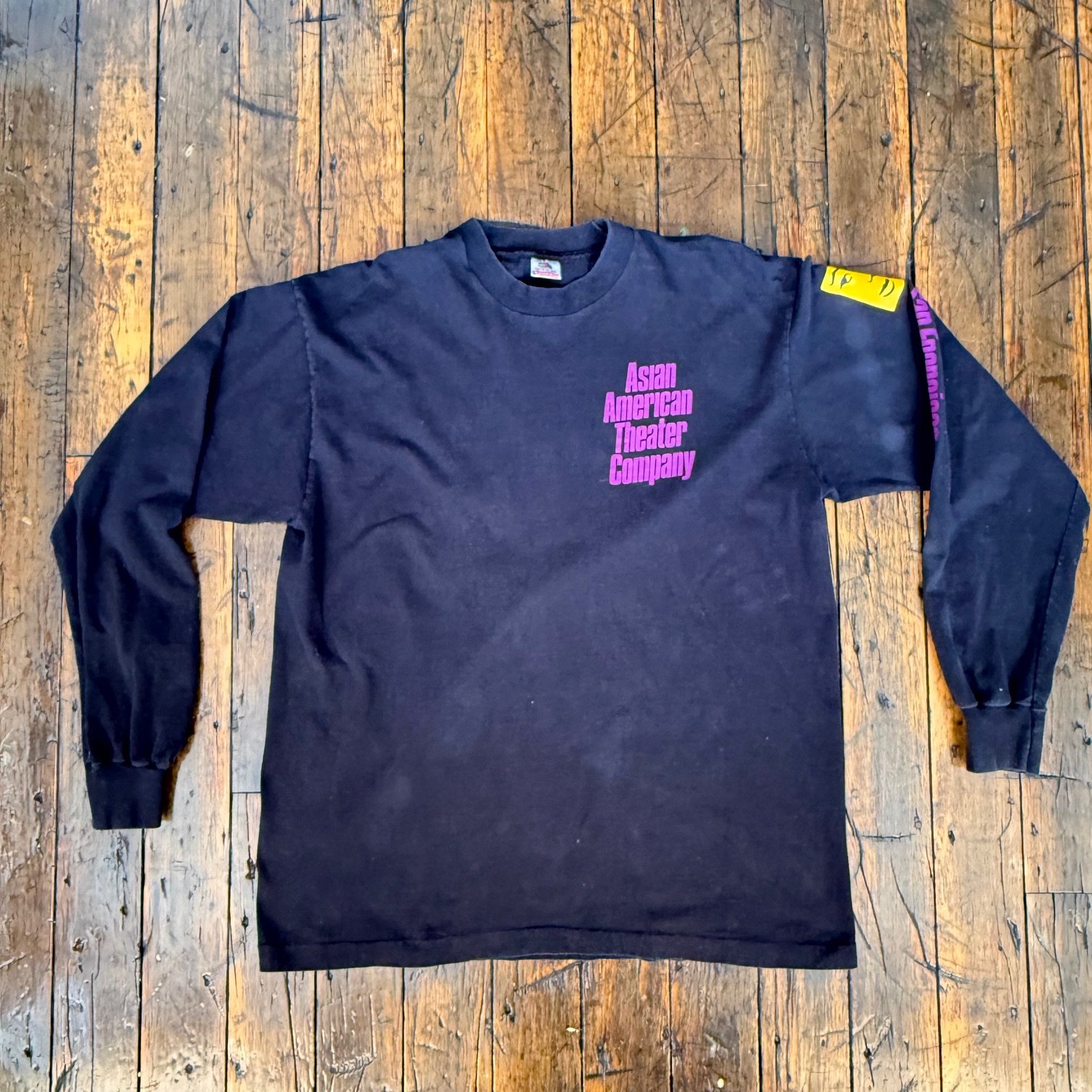 Phenomenal unique vintage tee for the Asian American Theatre Company in San Francisco. Bold purple and gold on the graphics that show well against the faded black on the garment.
