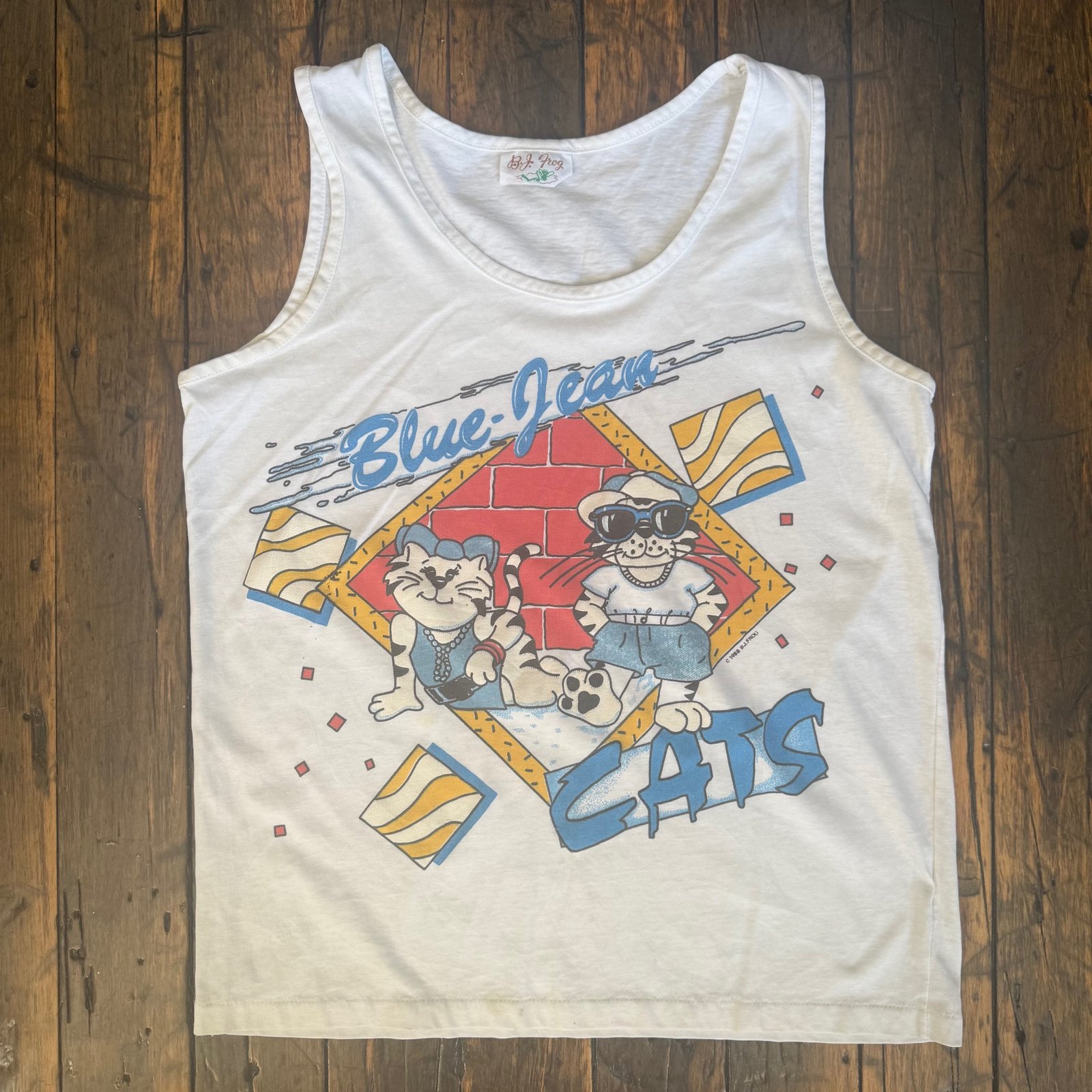 We are all about denim here at Rebound Style, and so are these cats. BJ Frog was an indie clothing label that did a lot of seasonal kitsch during the ’80s out of California. And this is no exception. Super rad tank from ’88.
