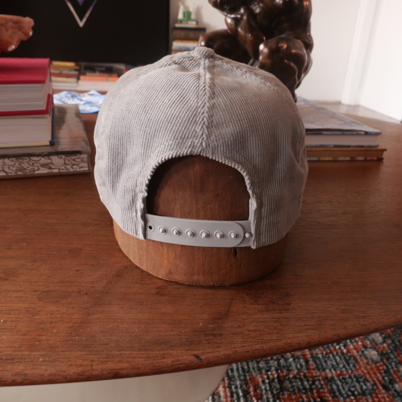 Charcoal grey corduroy snapback with red embroidery from the ‘90s. Support American brands with this Made in USA “The Winner” brand cap.